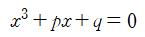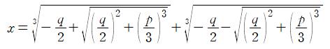 형태로 3차 방정식을 바꾸고 나서 기하학적 원리를 사용하여 대수적으로 얻은 다음의 공식을 카르다노의 공식이라고 합니다.