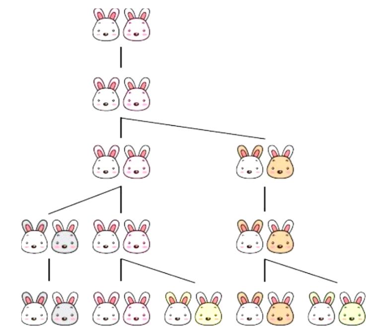 3. 세 번째 달부터는 이 토끼가 한 쌍의 새끼를 낳게 되어 토끼가 2쌍입니다.