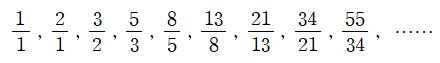 입니다. 이것이 피보나치수열입니다. 여기서 흥미로운 사실이 발견됩니다. 피보나치수열의 인접한 두 수의 비를 보면 즉, 각 항의 값을 바로 앞 항의 값으로 나누면
